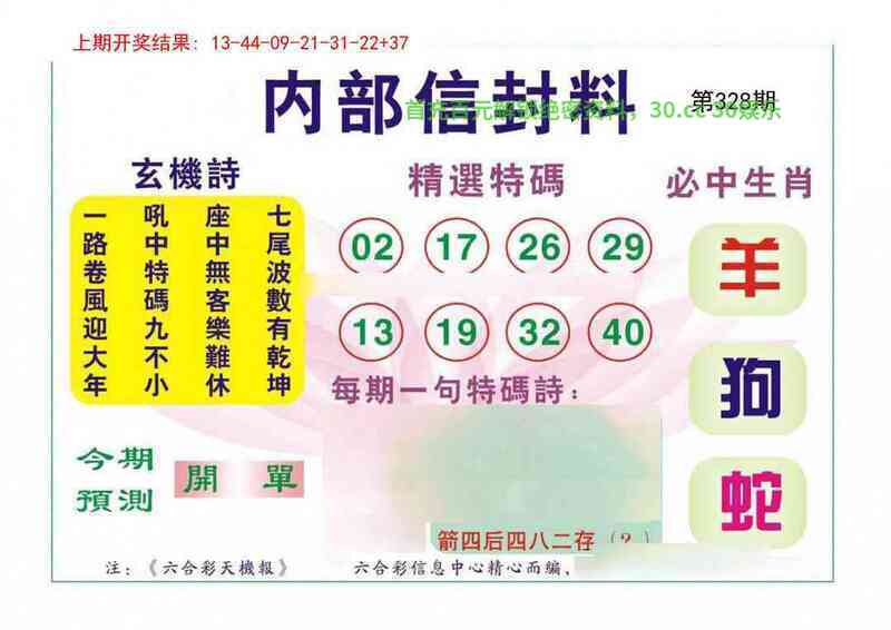 330期⑨肖:羊猴蛇马鸡狗猪牛鼠