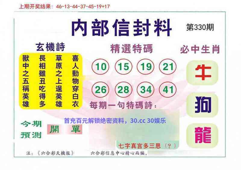 327期:七肖【兔虎蛇马鼠狗牛】开:蛇37准